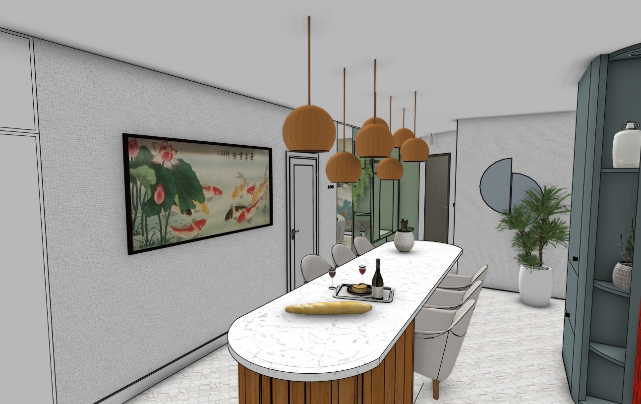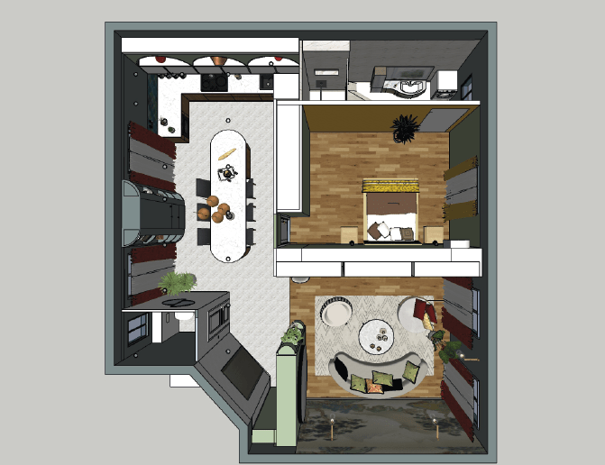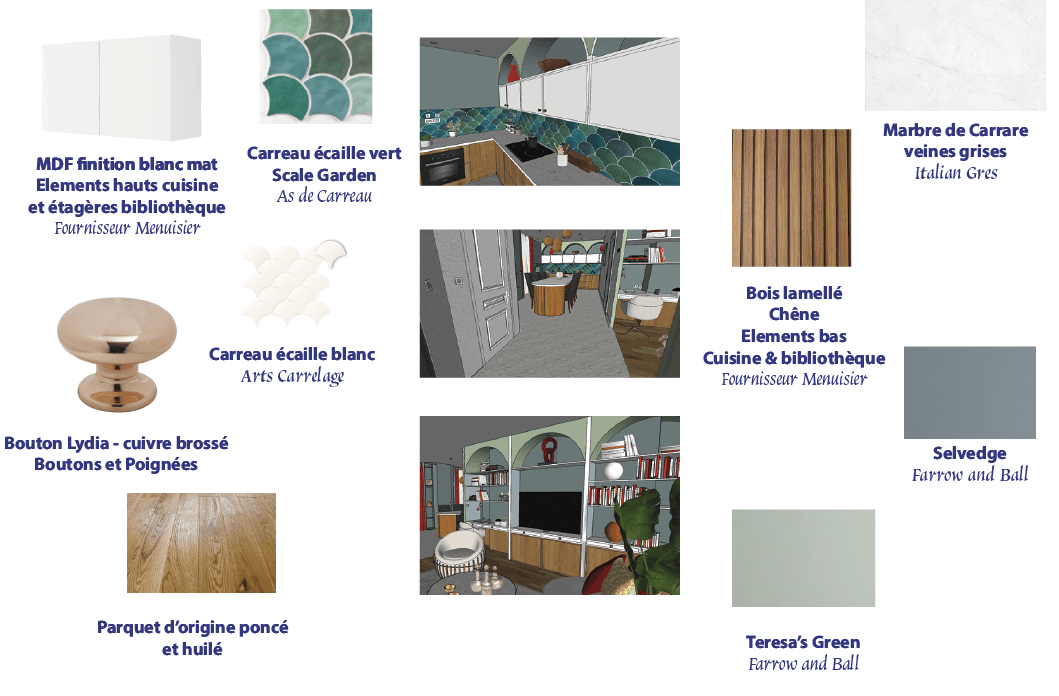 – Création de deux propositions d’agencement : représentation 3D simple et planches d’ambiances